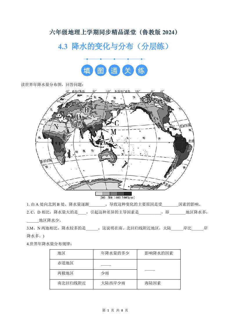 4.3 降水的变化与分布(分层练)(原卷版)