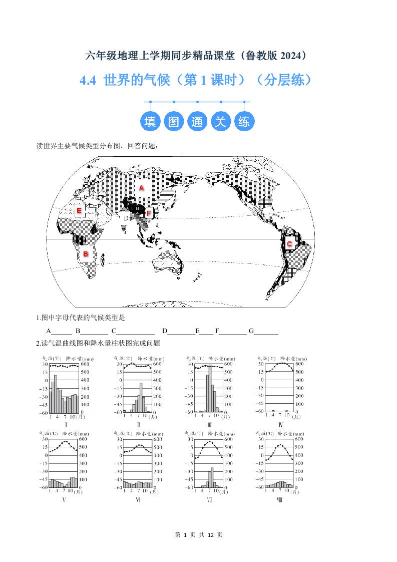 4.4 世界的气候(第1课时)(分层练)(原卷版)