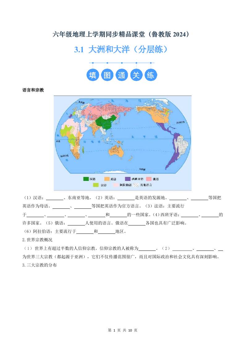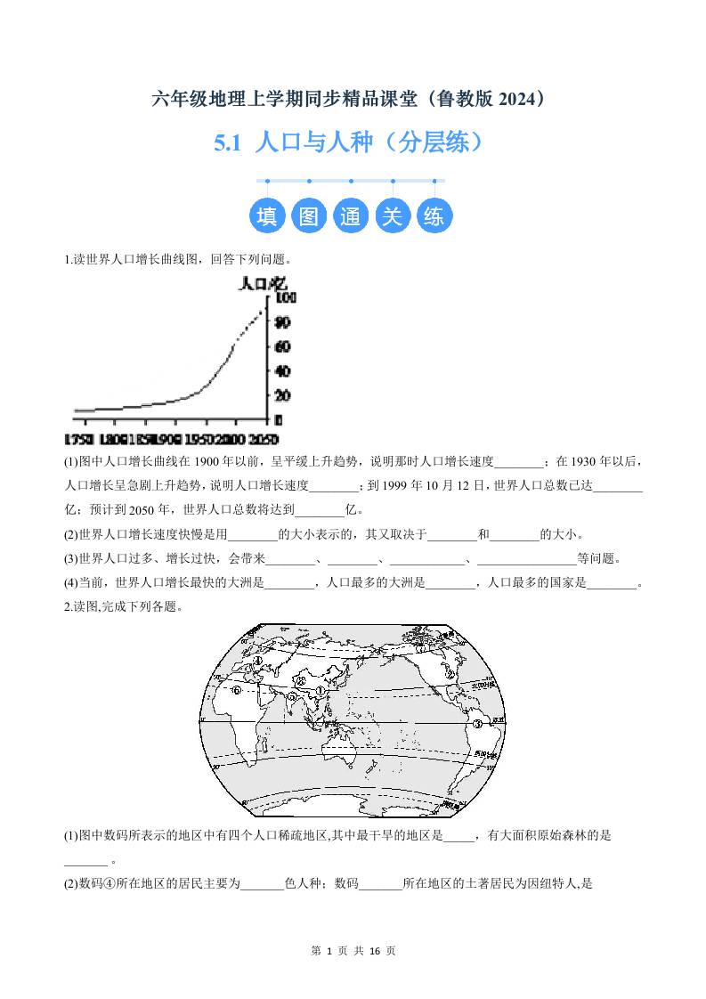 5.1人口与人种(分层练)(原卷版)