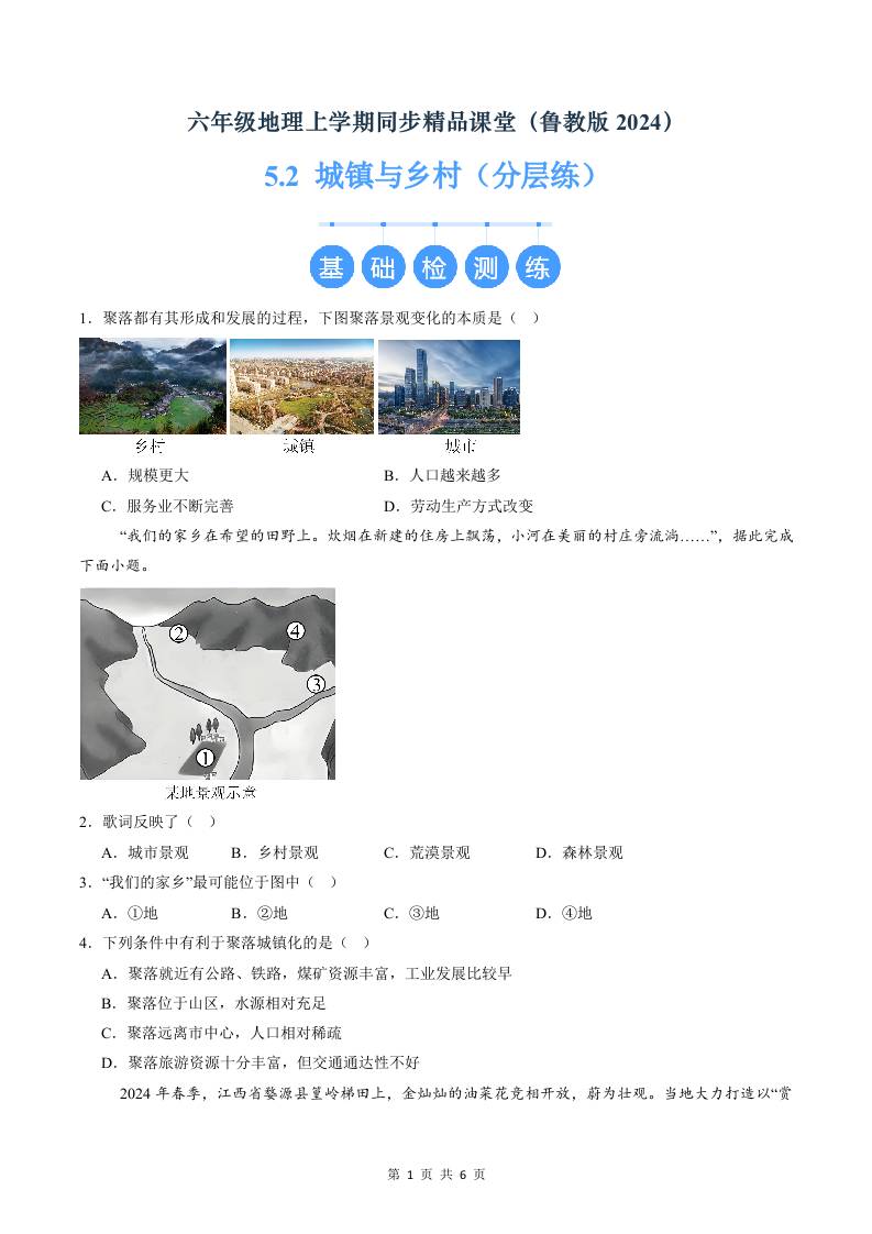 5.2 城镇与乡村(分层练)(原卷版)
