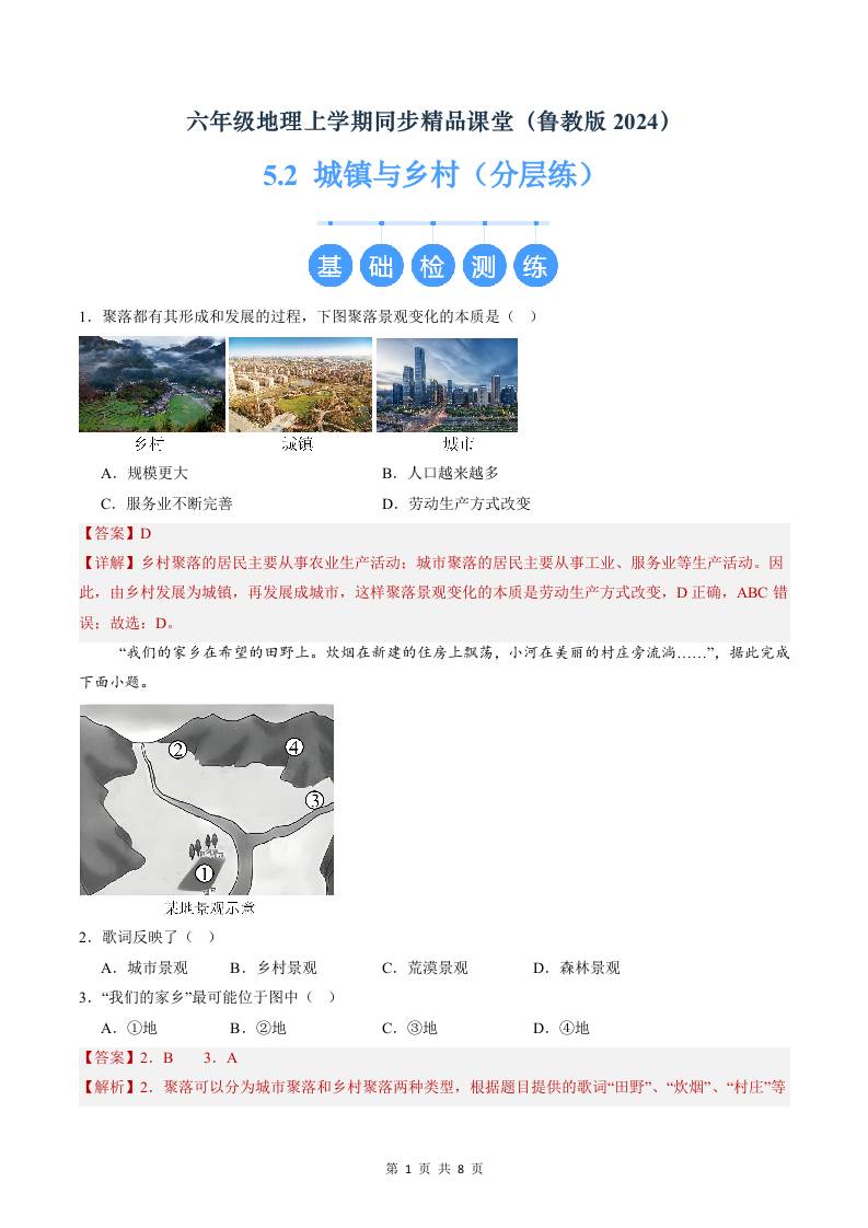 5.2 城镇与乡村(分层练)(解析版)