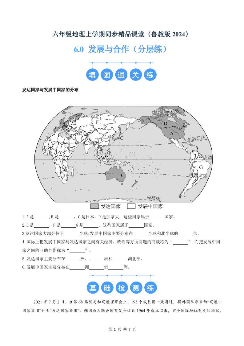 6.0发展与合作(分层练)(原卷版)