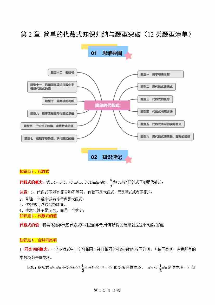 【沪教】第2章:简单的代数式知识归纳与题型突破(12类题型清单)(解析版)