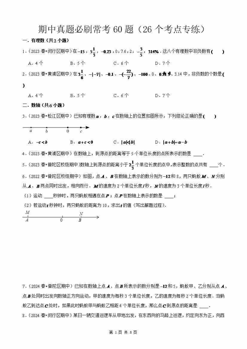 上海市六年级上学期期中真题必刷常考60题(26个考点专练)原卷版