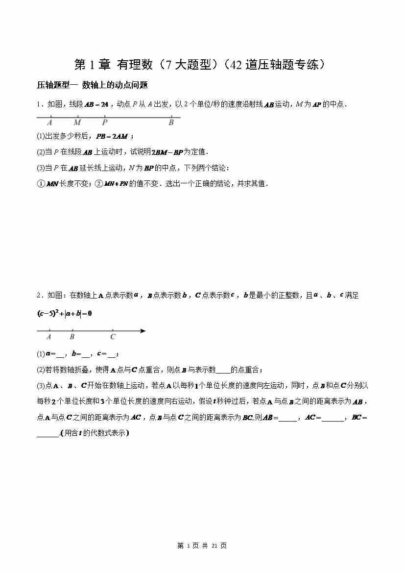 【沪教】第1章:有理数(7大题型)(42道压轴题专练)(原卷版)