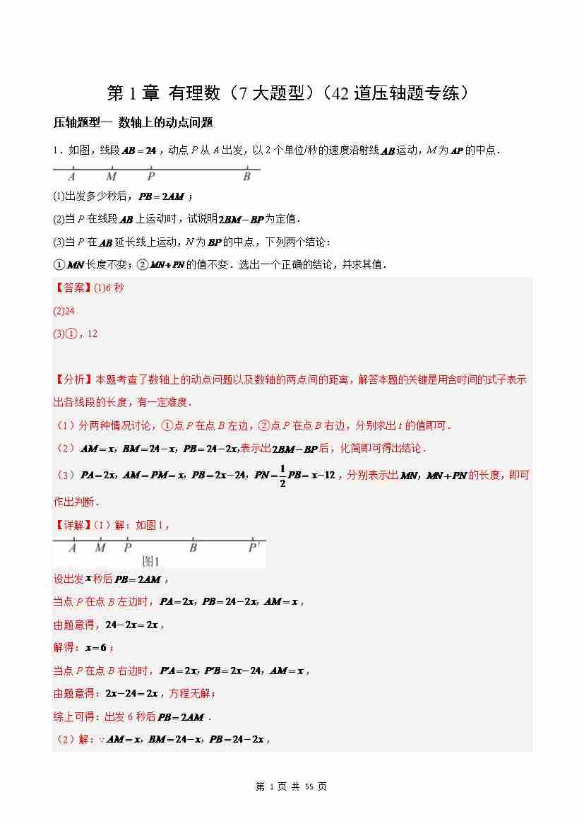 【沪教】第1章:有理数(7大题型)(42道压轴题专练)(解析版)