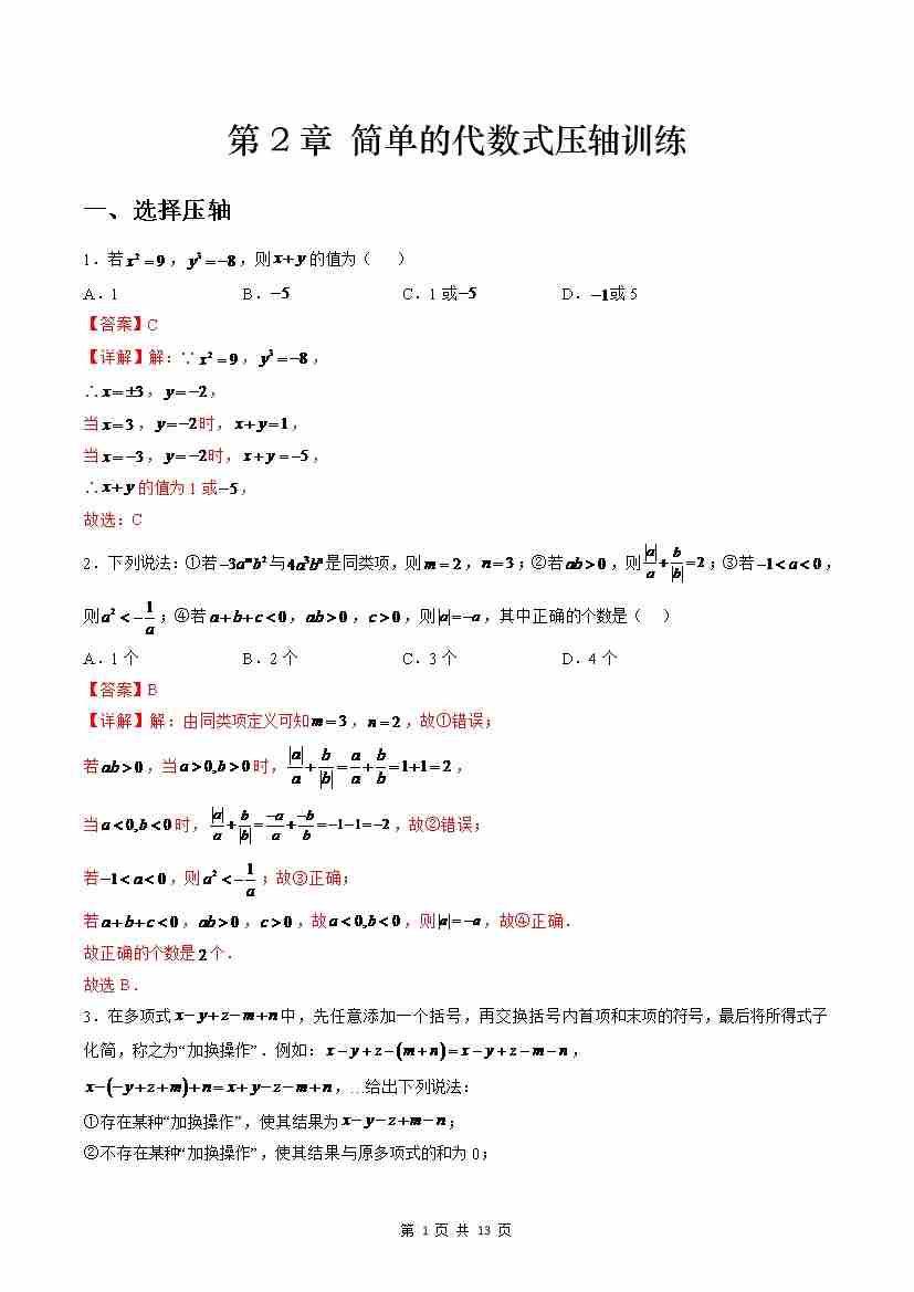 【沪教】第2章:简单的代数式压轴训练(解析版)