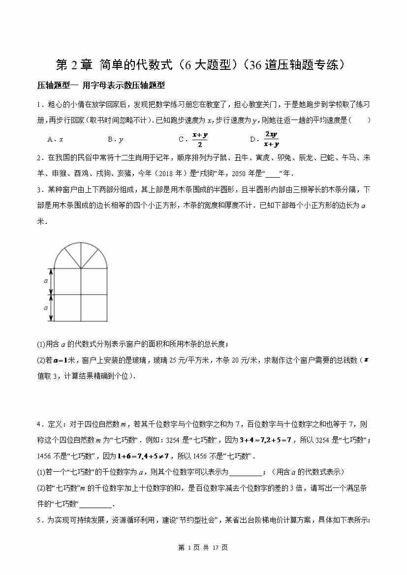 【沪教】第2章:简单的代数式(6大题型)(36道压轴题专练)(原卷版)