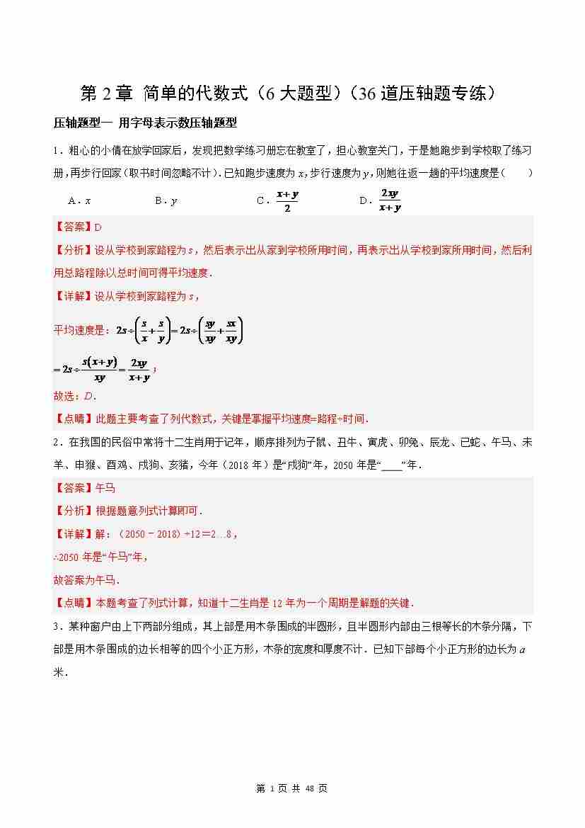 【沪教】第2章:简单的代数式(6大题型)(36道压轴题专练)(解析版)