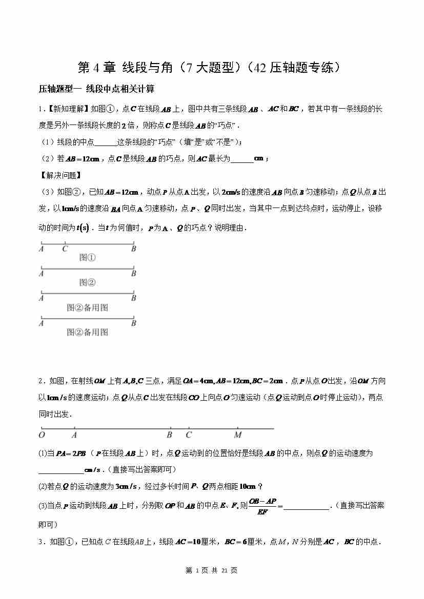 【沪教】第4章:线段与角(7大题型)(42道压轴题专练)(原卷版)