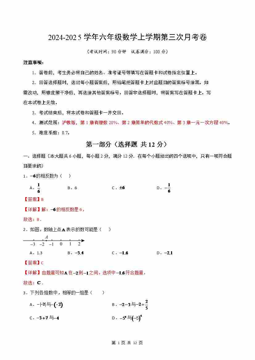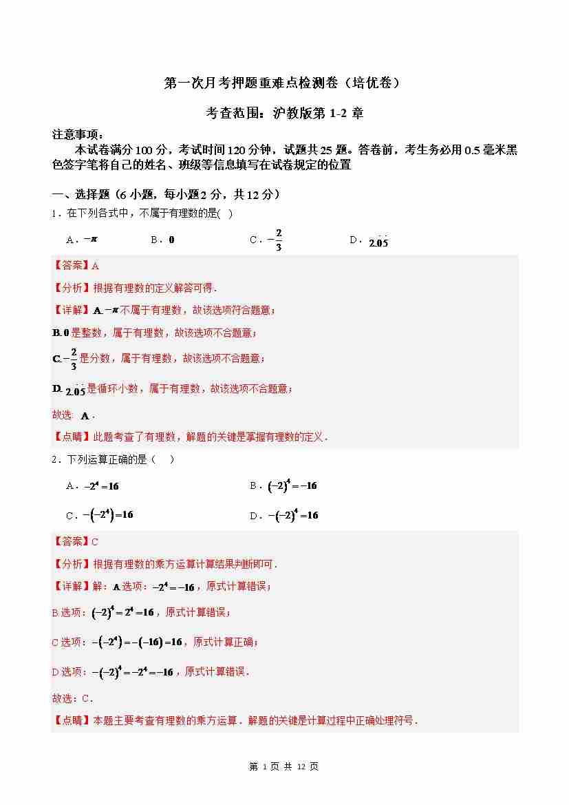 第一次月考押题重难点检测卷(培优卷)(考试范围:沪教版第1-2章)(解析版)