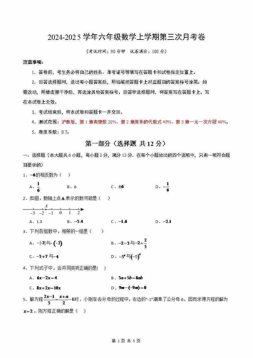 六年级上学期开学摸底卷02(考试范围:沪教版五下全部内容+六年级上衔接内容)(解析版)
