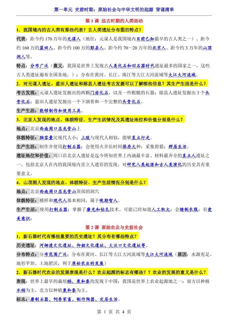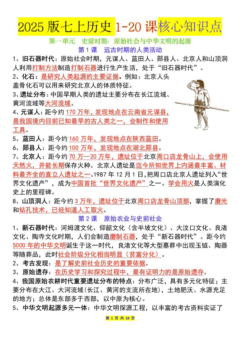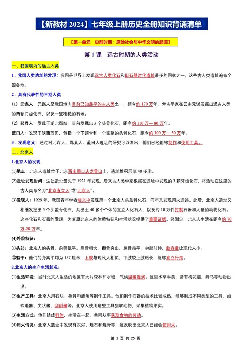 25年秋七年级上册历史知识点总结归纳背诵清单(21页