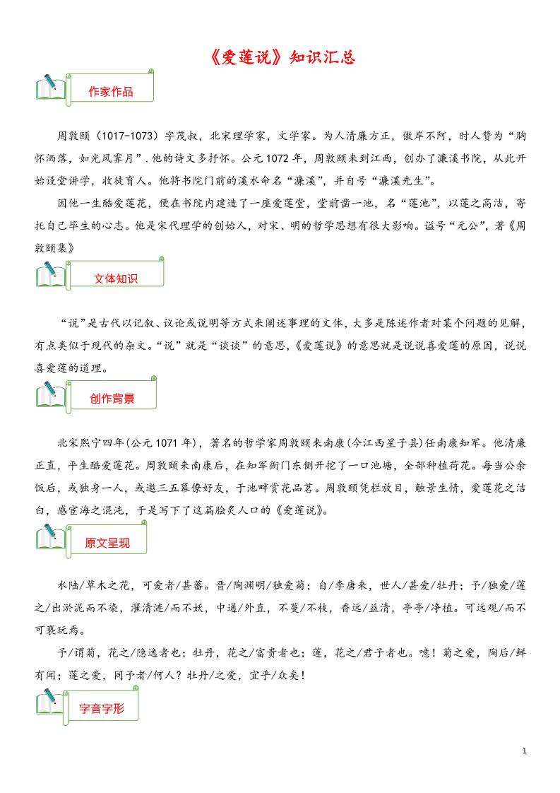 专题04《爱莲说》知识汇总(部编版)