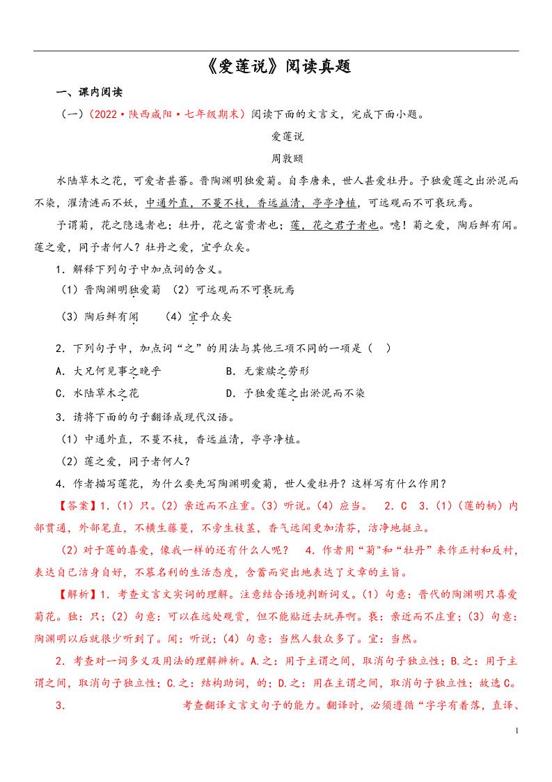 专题04《爱莲说》阅读真题(解析版)(部编版)