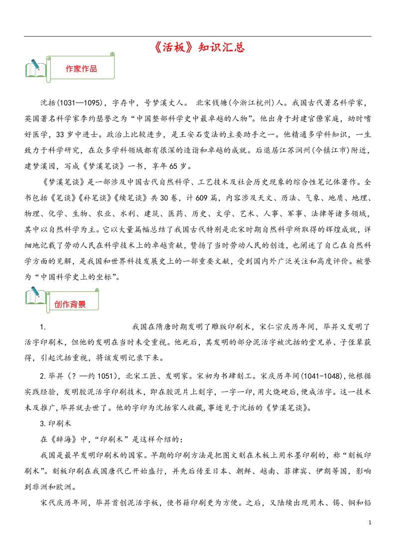 专题05《活板》知识汇总(部编版)