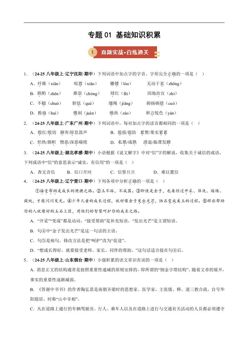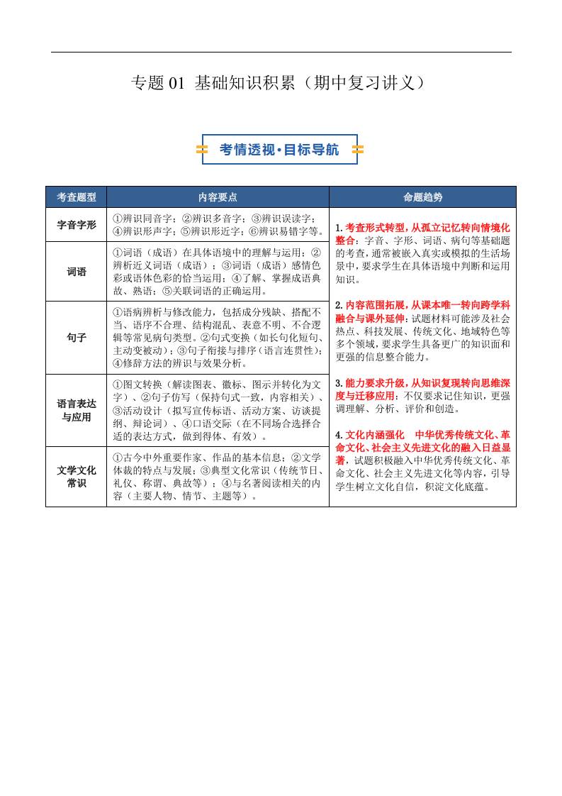 专题01 基础知识积累(期中复习讲义)(原卷版)