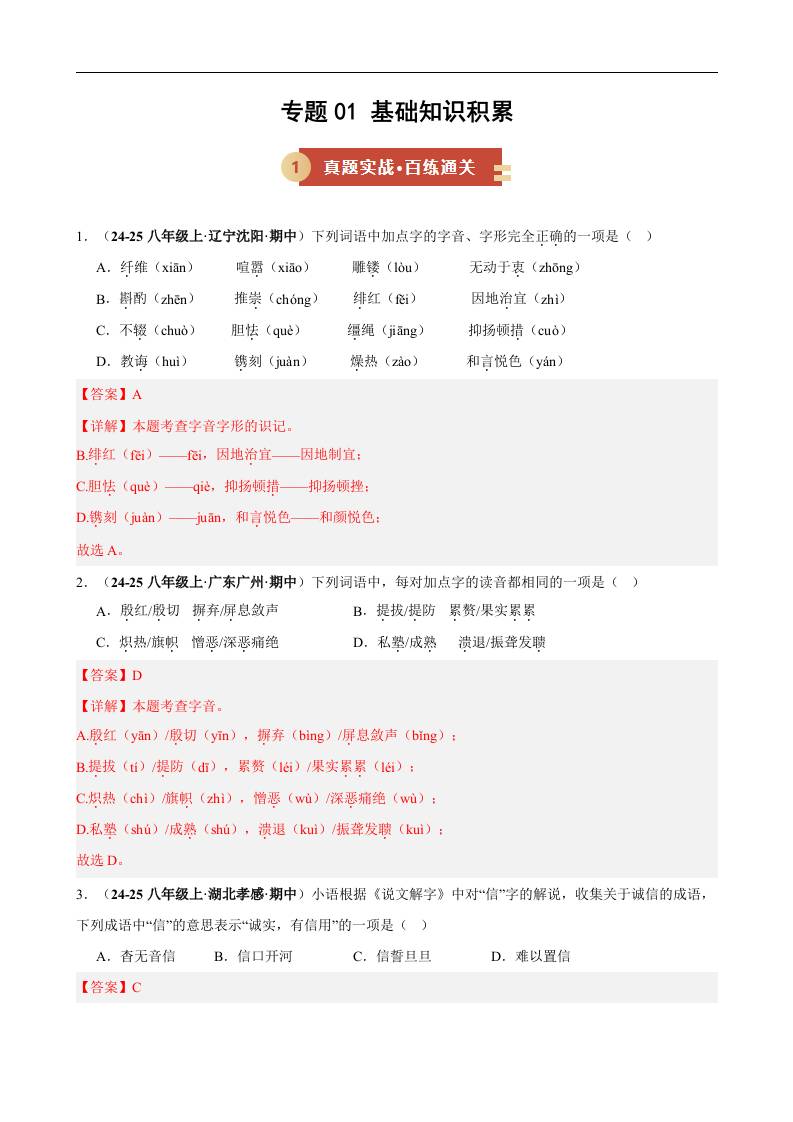 专题01 基础知识积累(期中专项训练)(解析版)