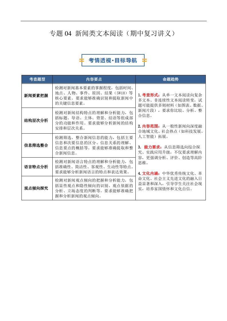 专题04 新闻类文本阅读(期中复习讲义)(原卷版)