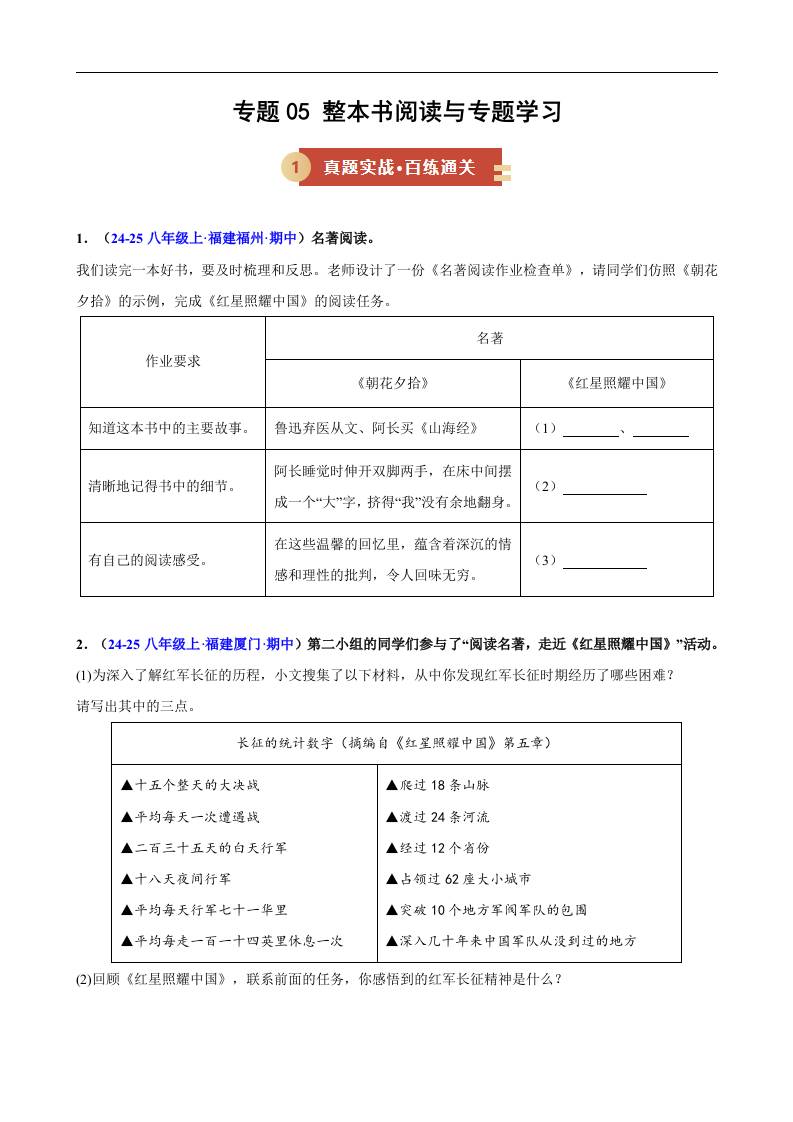 专题05 整本书阅读与专题学习(期中专项训练)(原卷版)