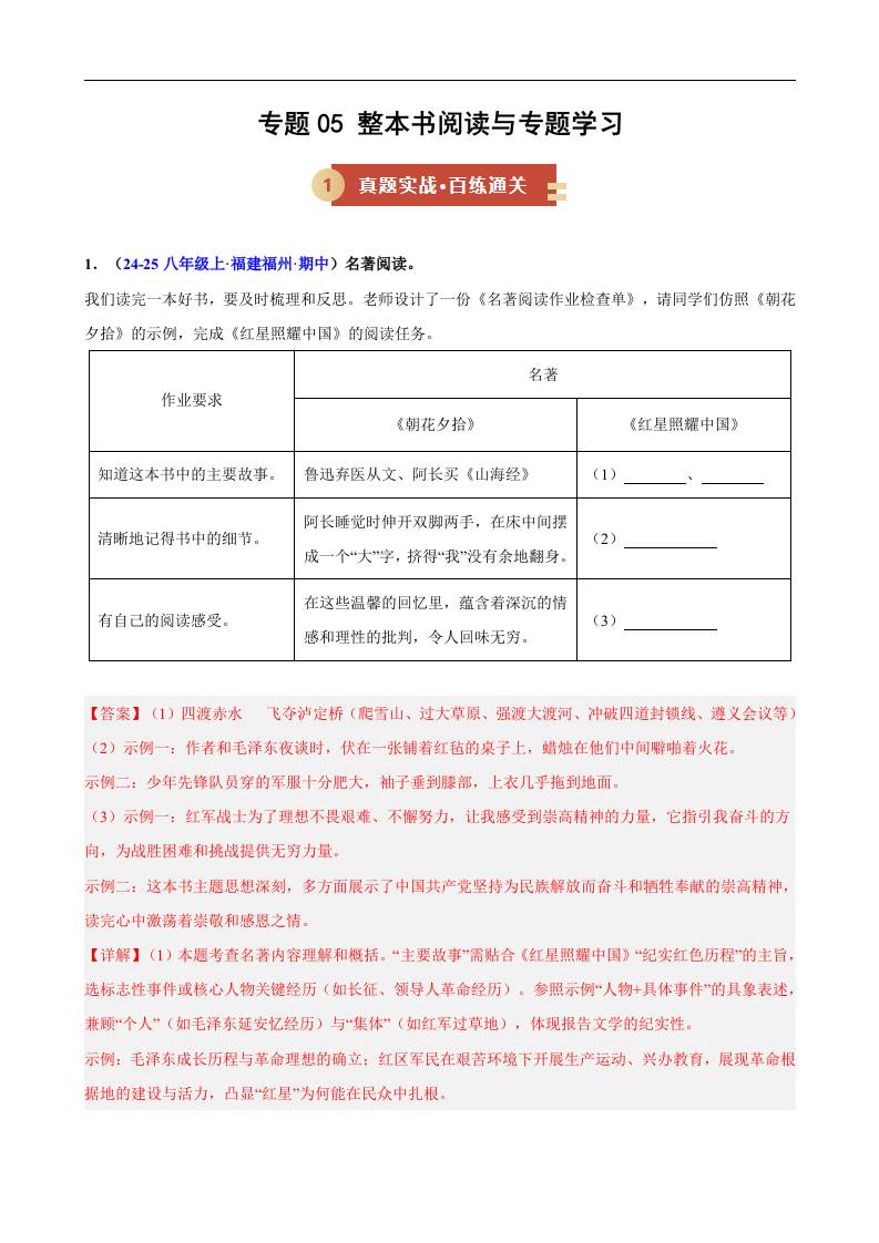 专题05 整本书阅读与专题学习(期中专项训练)(解析版)