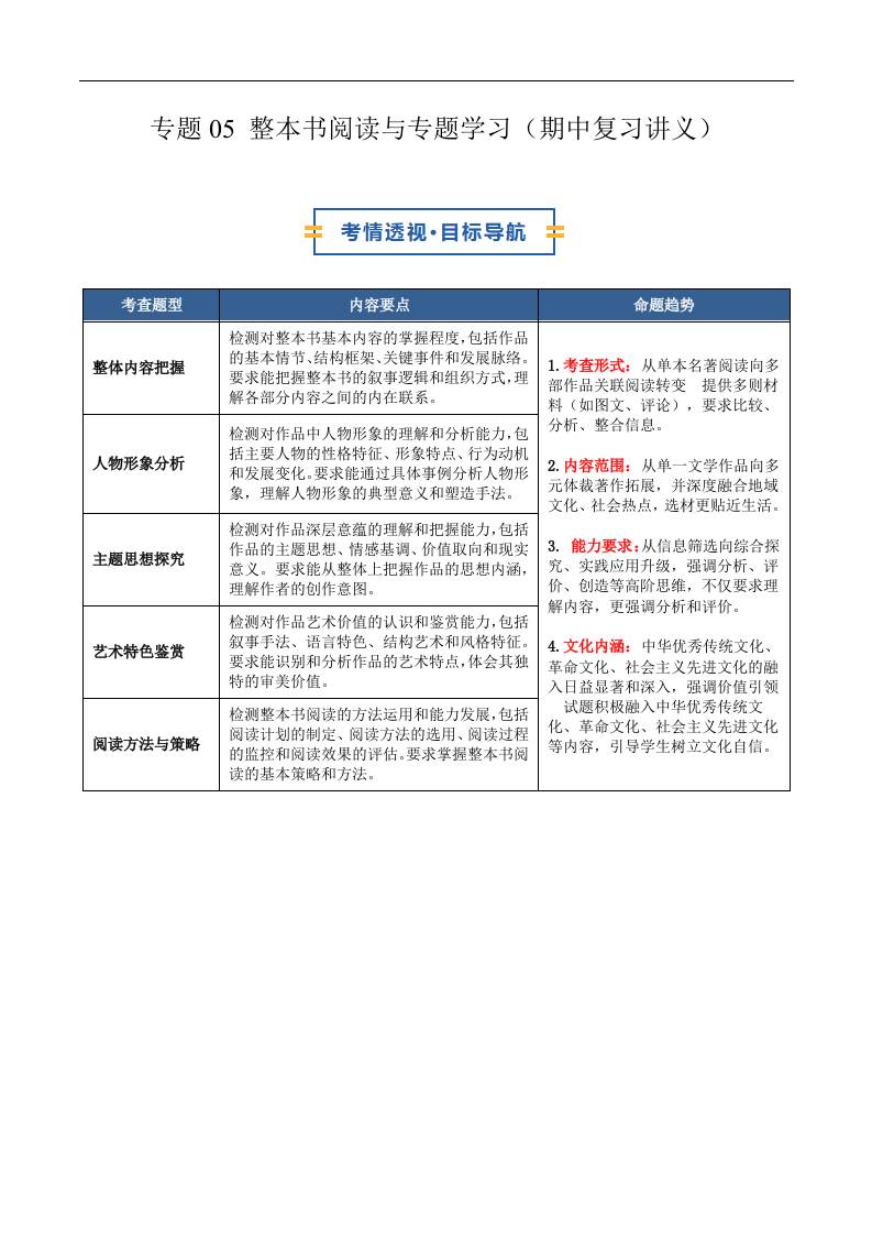 专题05 整本书阅读与专题学习(期中复习讲义)(原卷版)