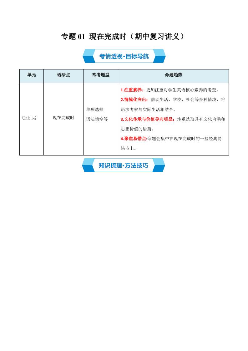 专题 Units 1~3 教材核心知识串讲(期中复习课件)