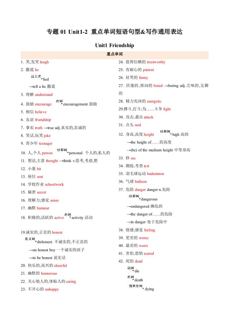 专题01 Unit1-2 重点单词短语句型&写作通用表达(期中知识清单)(背诵版)