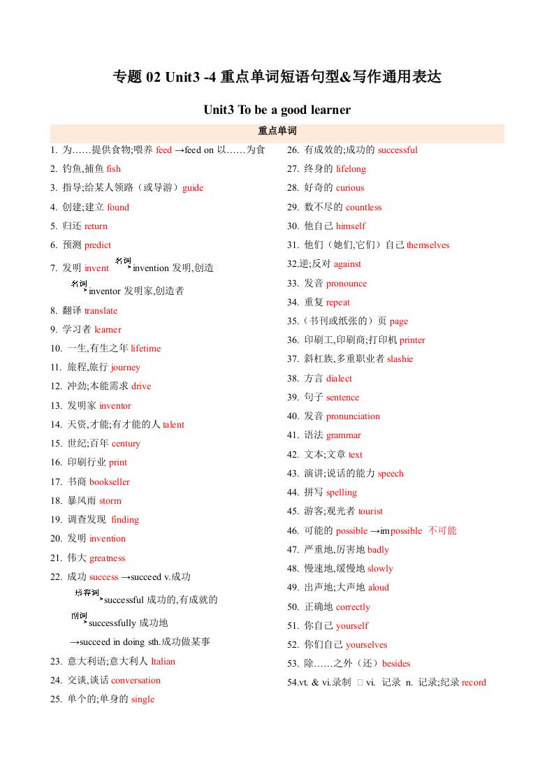 专题02 Unit3-4 重点单词短语句型&写作通用表达(期中知识清单)(背诵版)