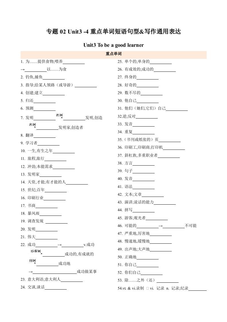 专题02 Unit3-4 重点单词短语句型&写作通用表达(期中知识清单)(默写版)