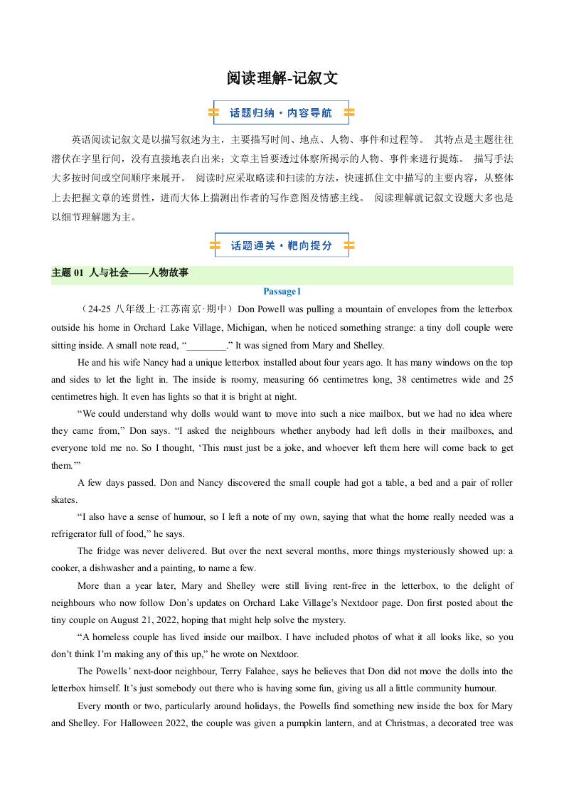 专题06 阅读理解-记叙文(期中专项训练)(学生版)