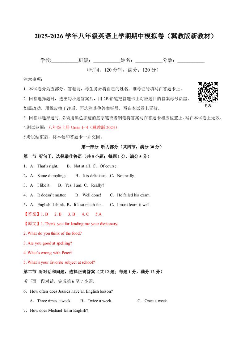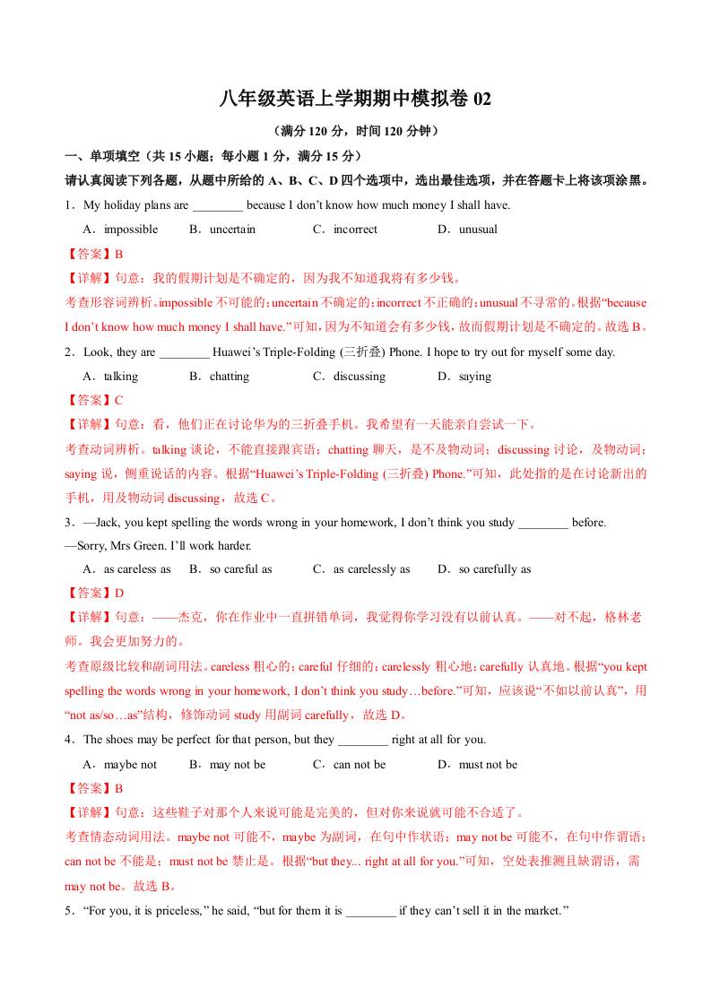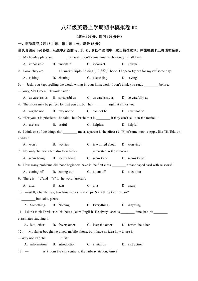 专题02期中模拟卷02(考试版A4)(译林版2024)