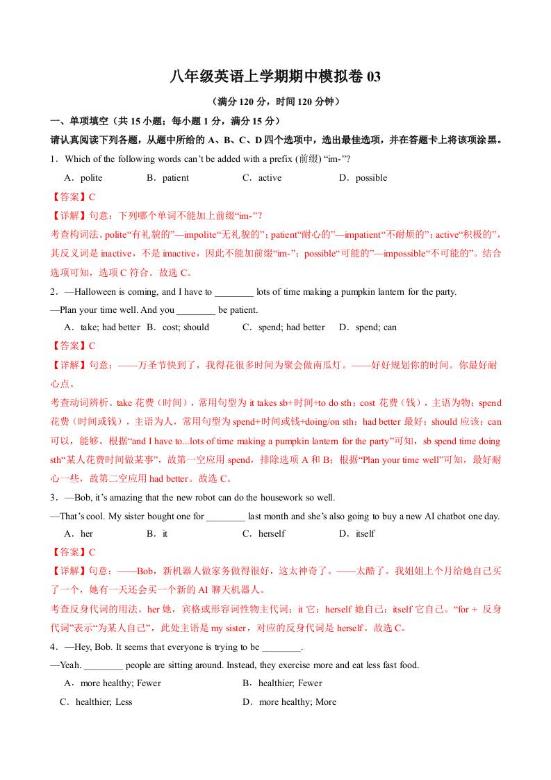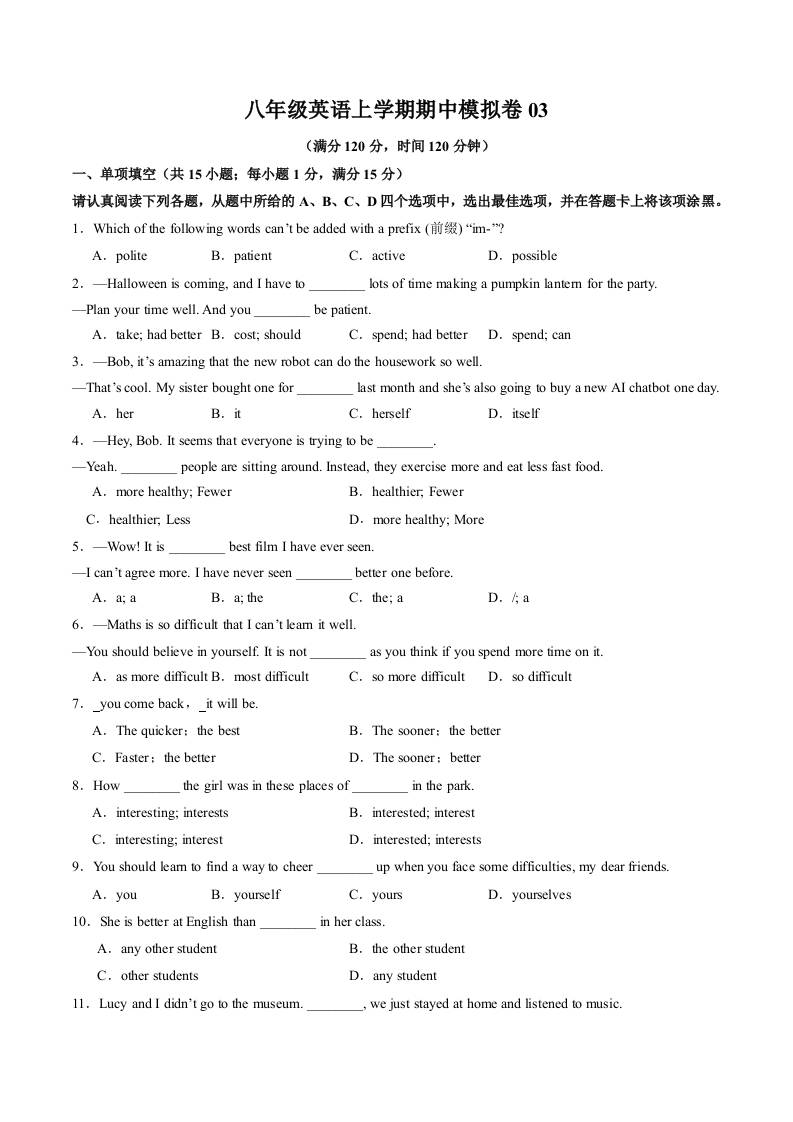 专题03期中模拟卷03(考试版A4)(译林版2024)