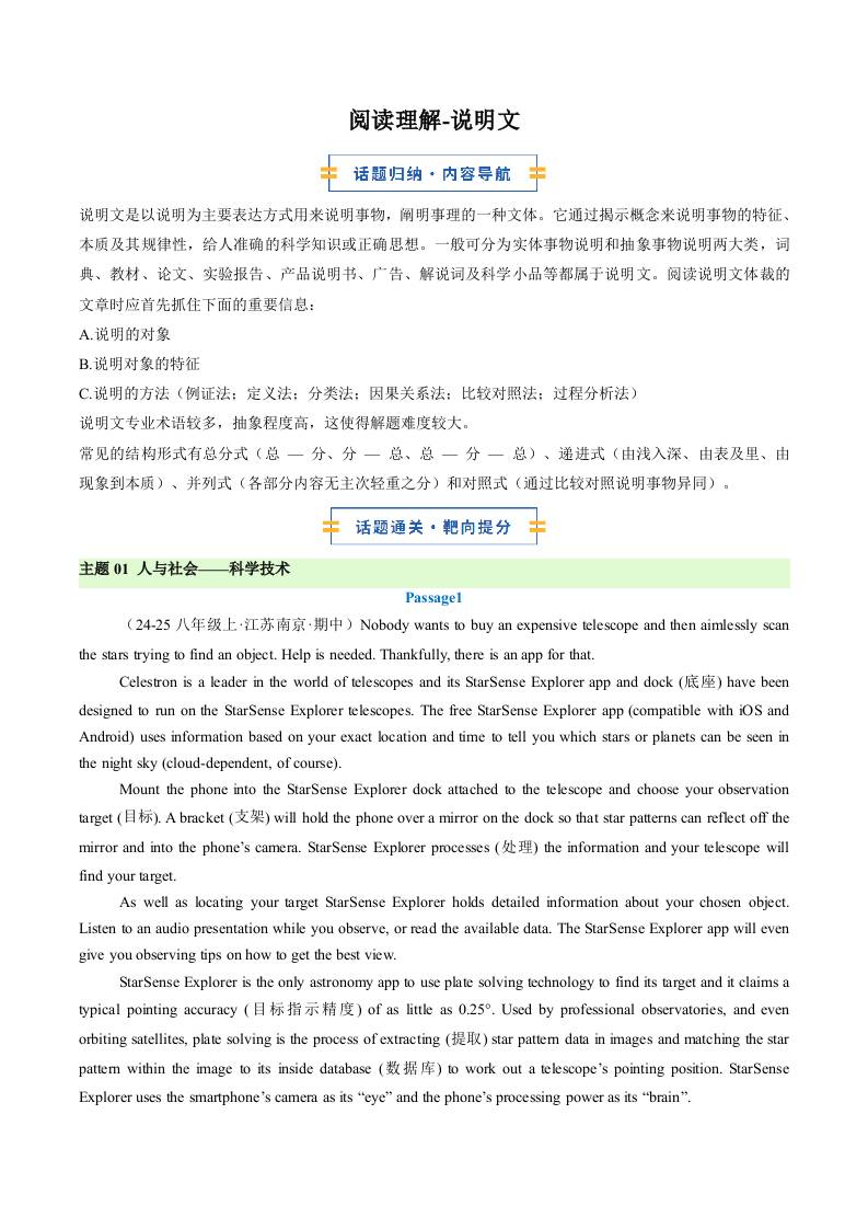 专题07 阅读理解-说明文(期中专项训练)(学生版)