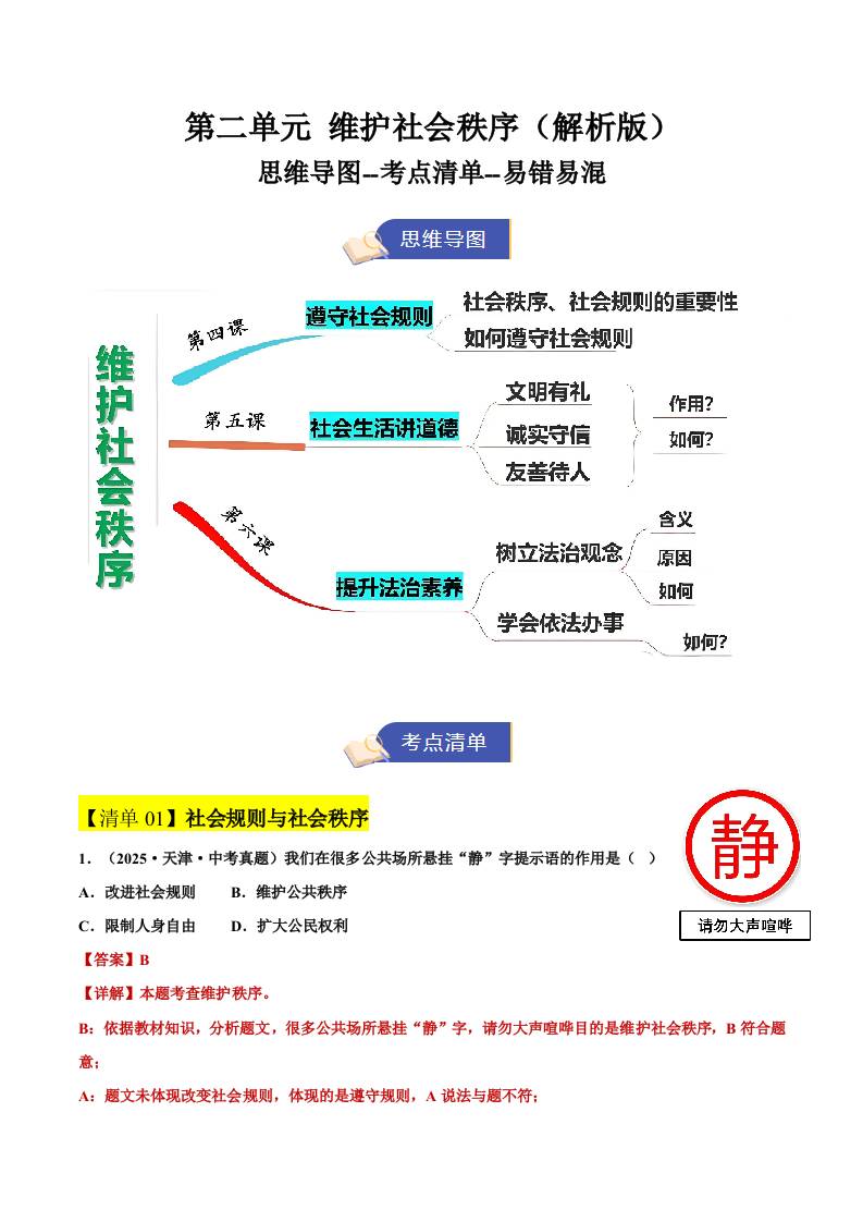 3.第二单元 维护社会秩序(期中知识清单)(教师版)