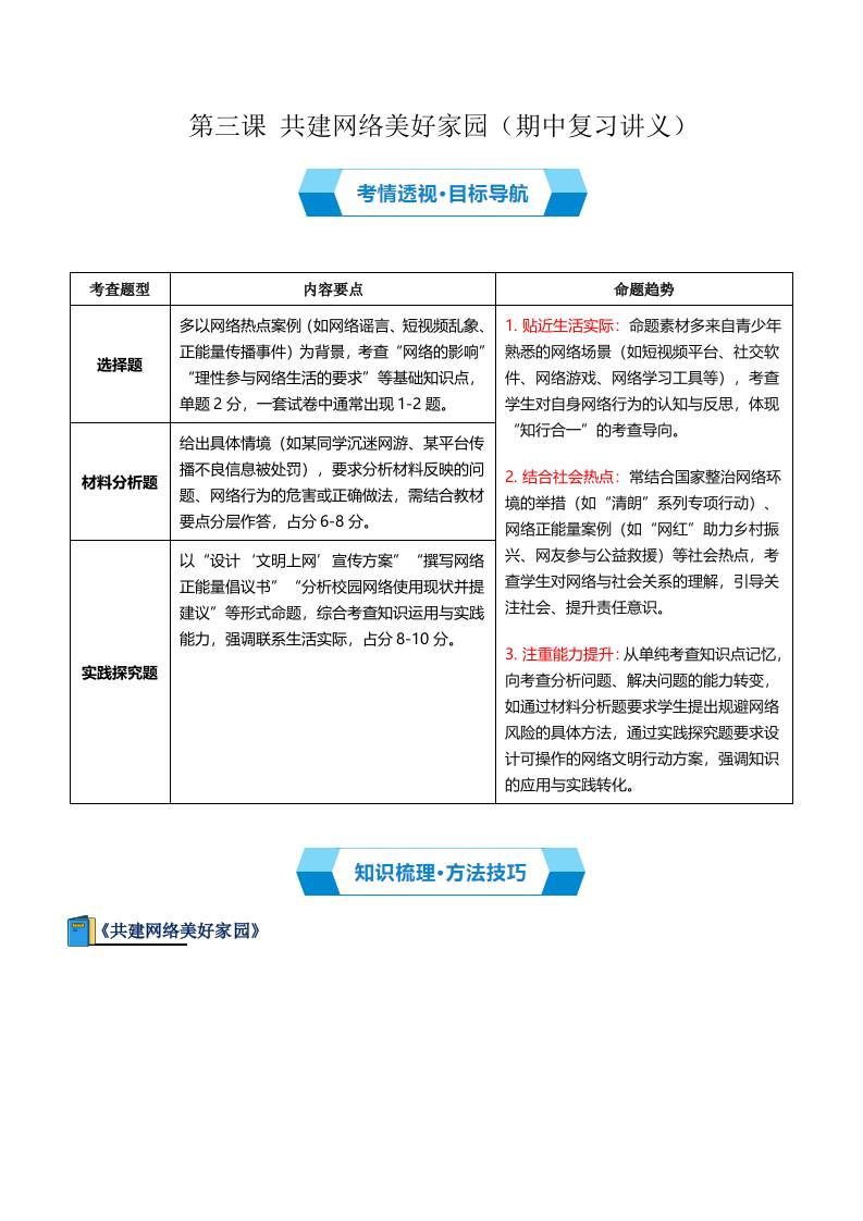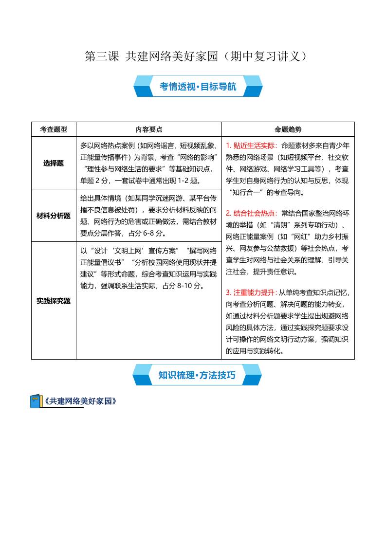 第三课 共建网络美好家园(期中复习讲义)(学生版)