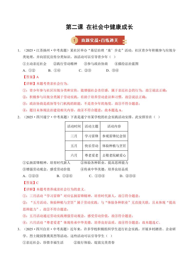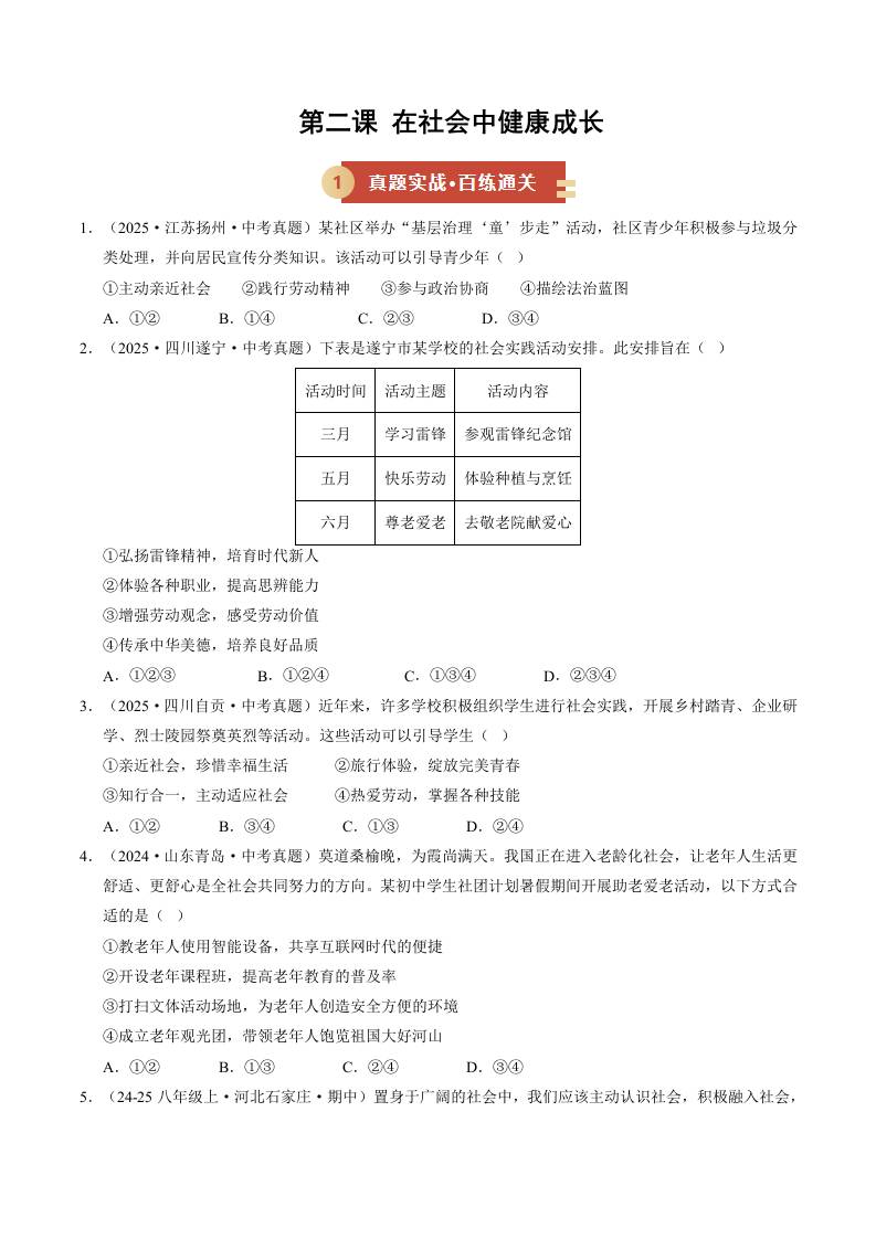 第二课 在社会中健康成长(期中专项训练)(学生版)