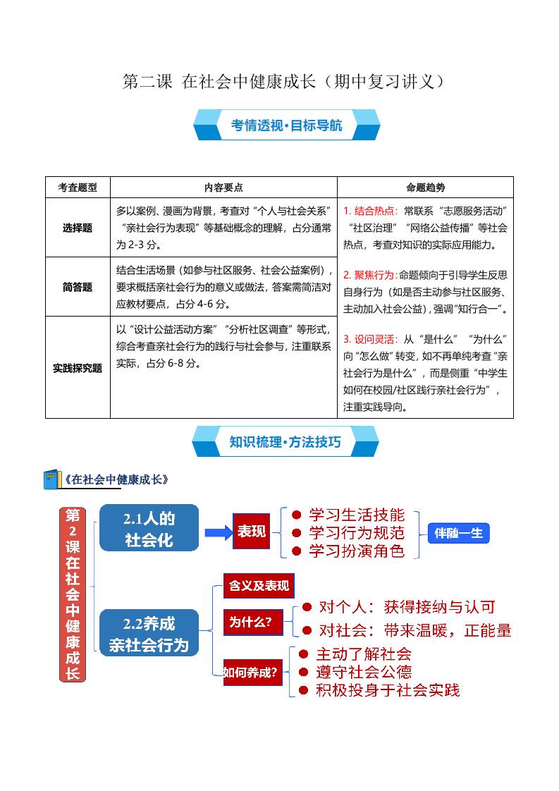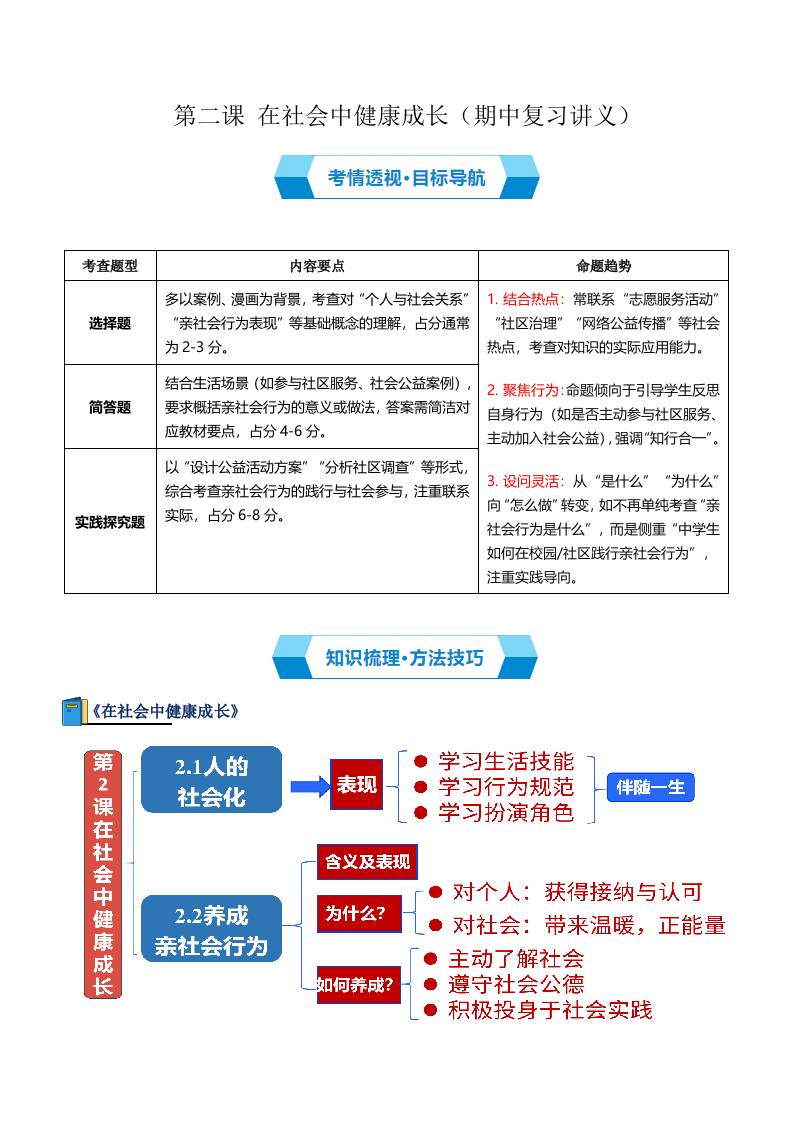 第二课 在社会中健康成长(期中复习讲义)(学生版)