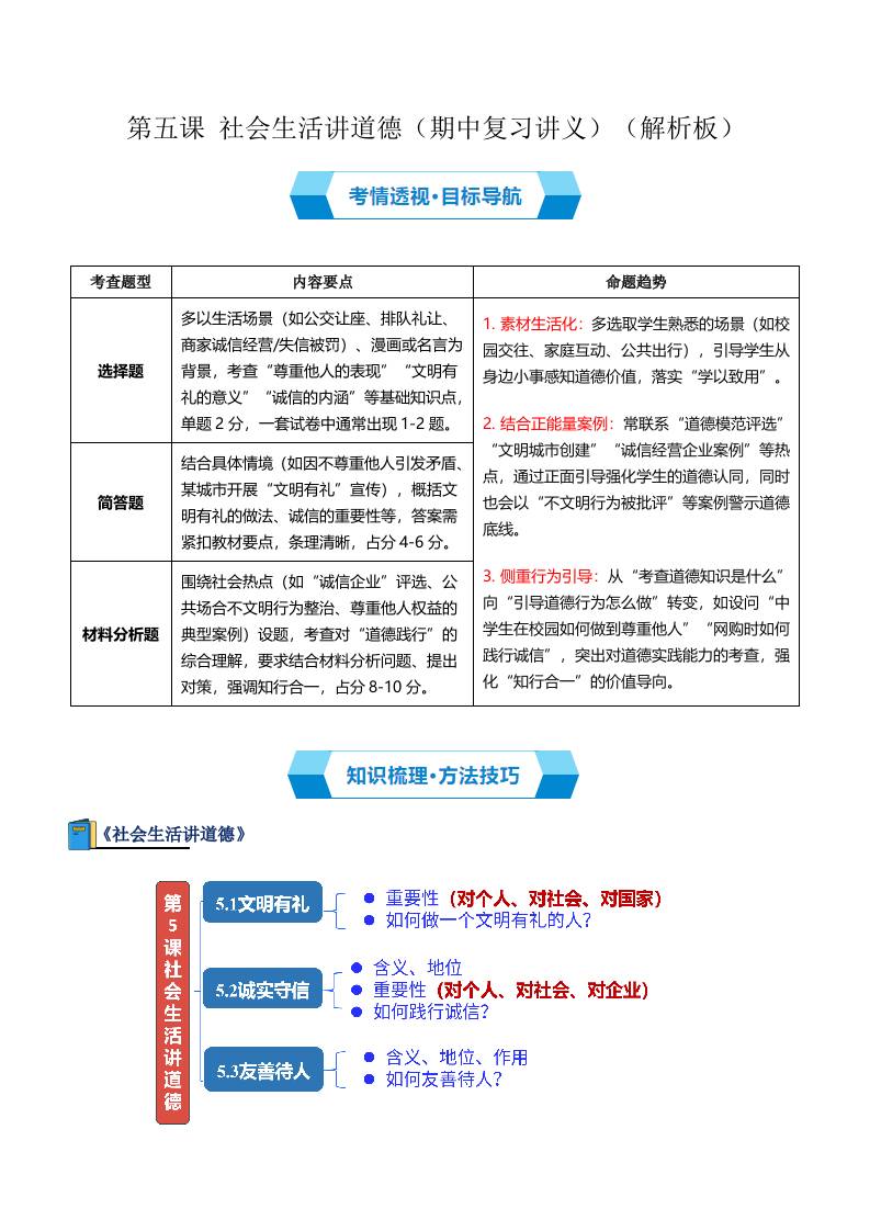 第五课 社会生活讲道德(期中复习讲义) (学生版)