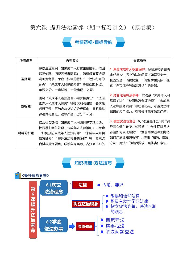 第六课提升法治素养(期中复习讲义) (学生版)