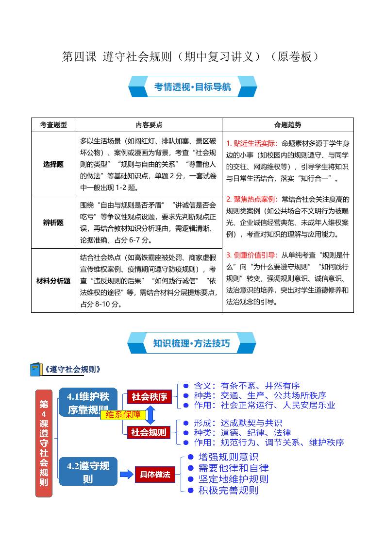 第四课 遵守社会规则(期中复习讲义) (学生版)