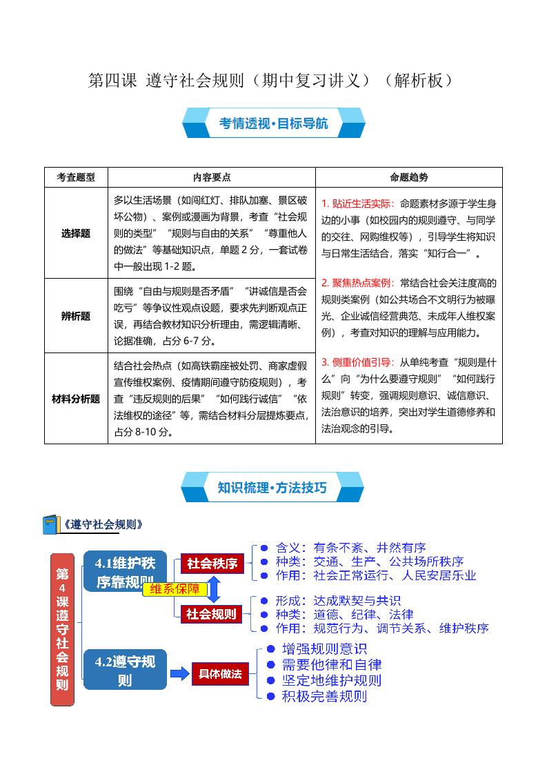 第四课 遵守社会规则(期中复习讲义) (教师版)
