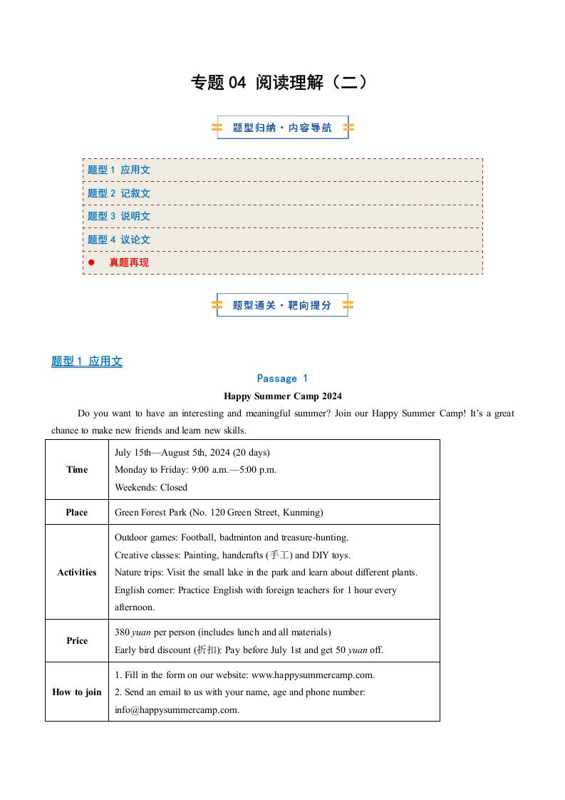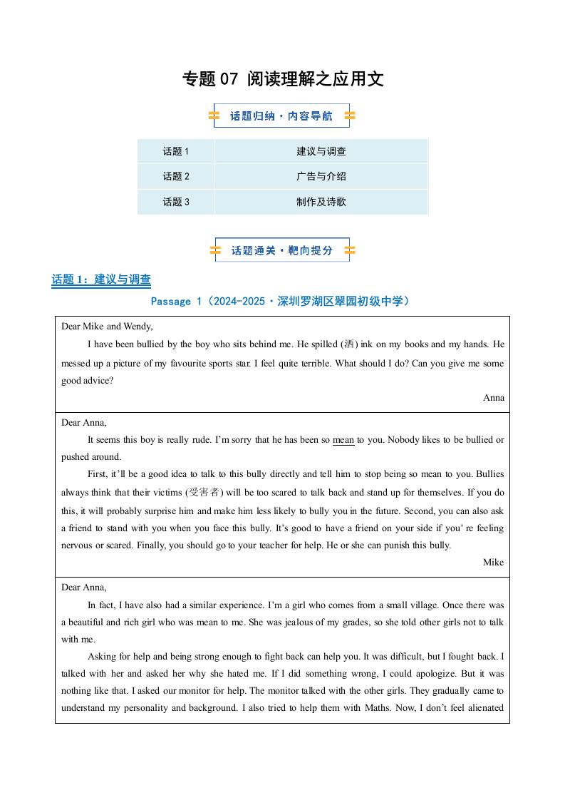 考前押题07 阅读理解之应用文(期中专项训练)(学生版)