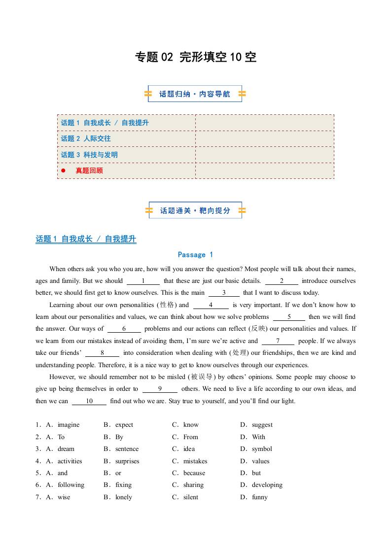 考前押题02 完形填空10空(期中专项训练)(学生版)