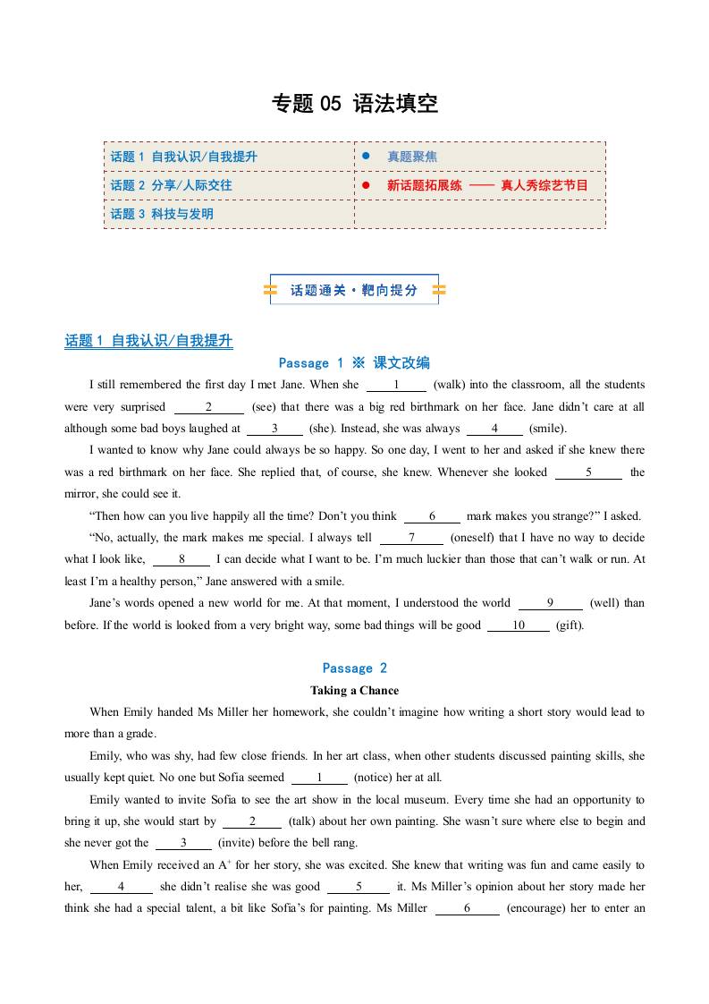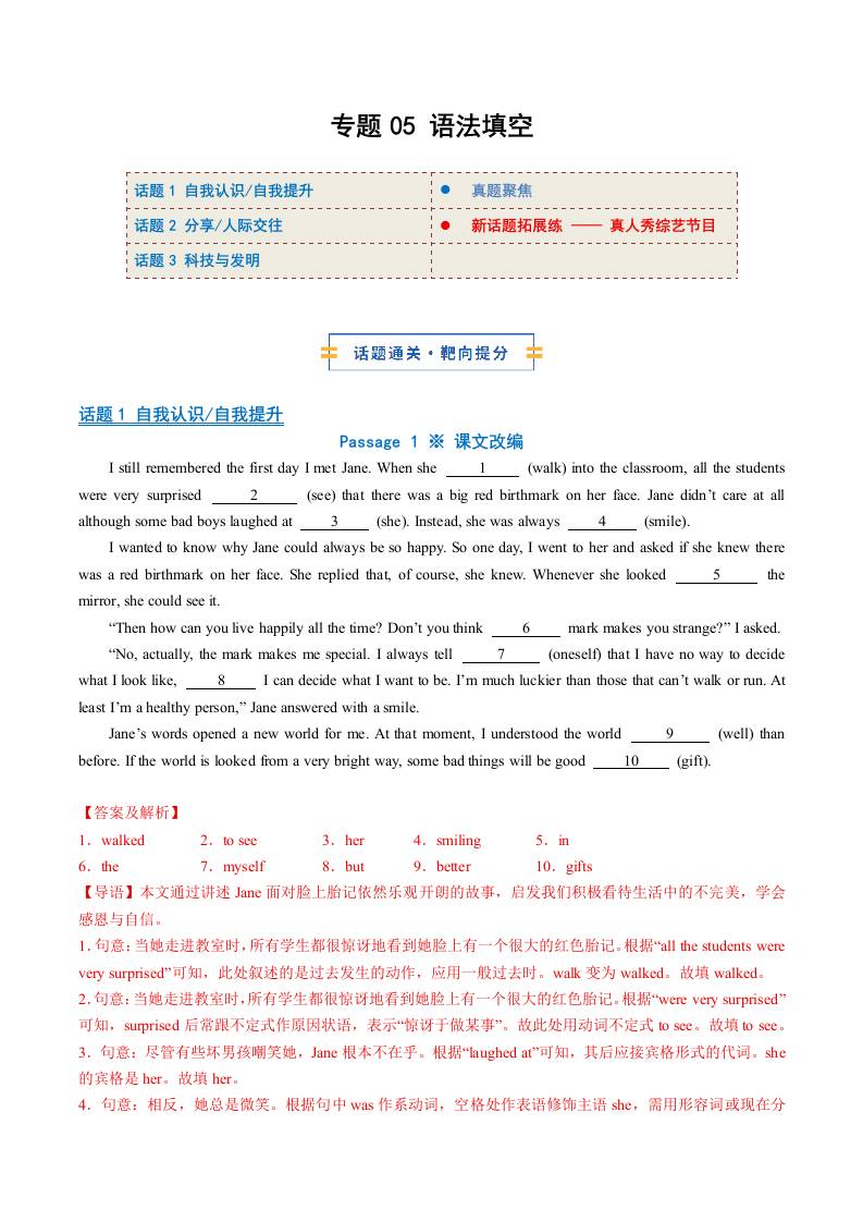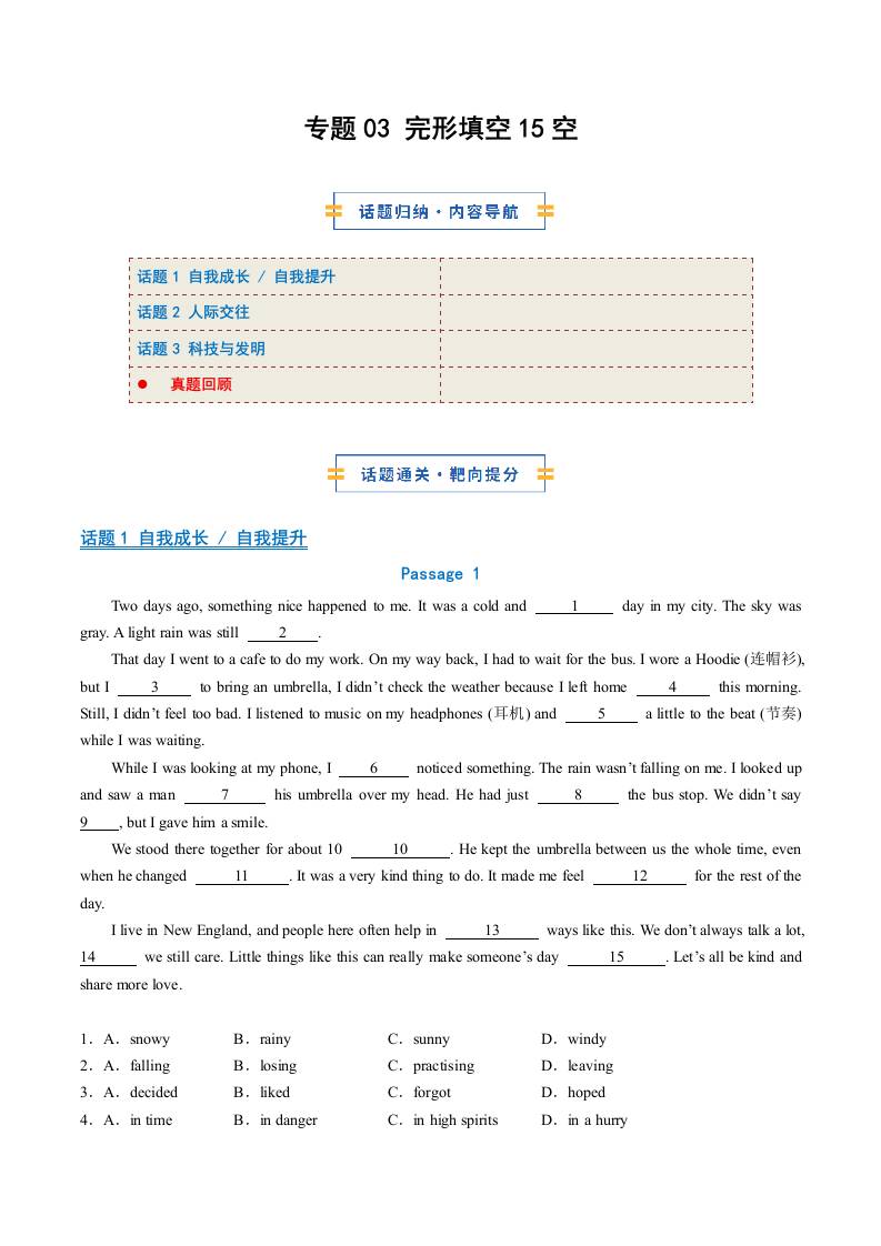 考前押题03 完形填空15空(期中专项训练)(教师版)