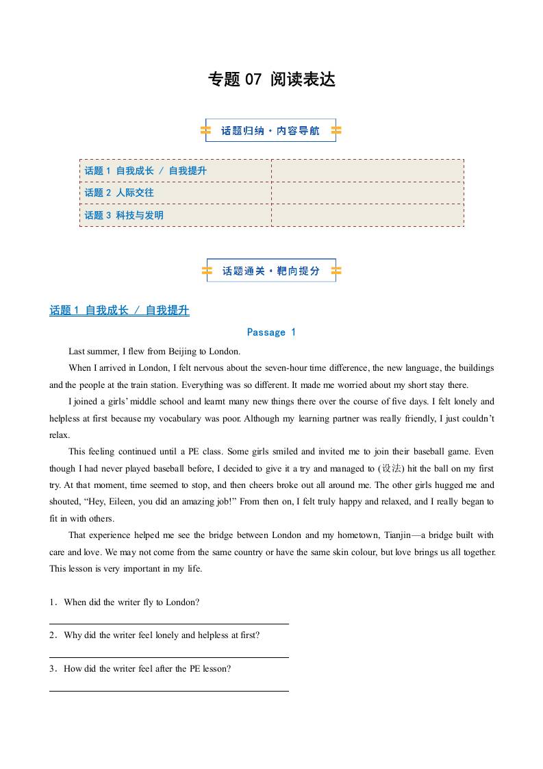 考前押题07 阅读表达(期中专项训练)(学生版)