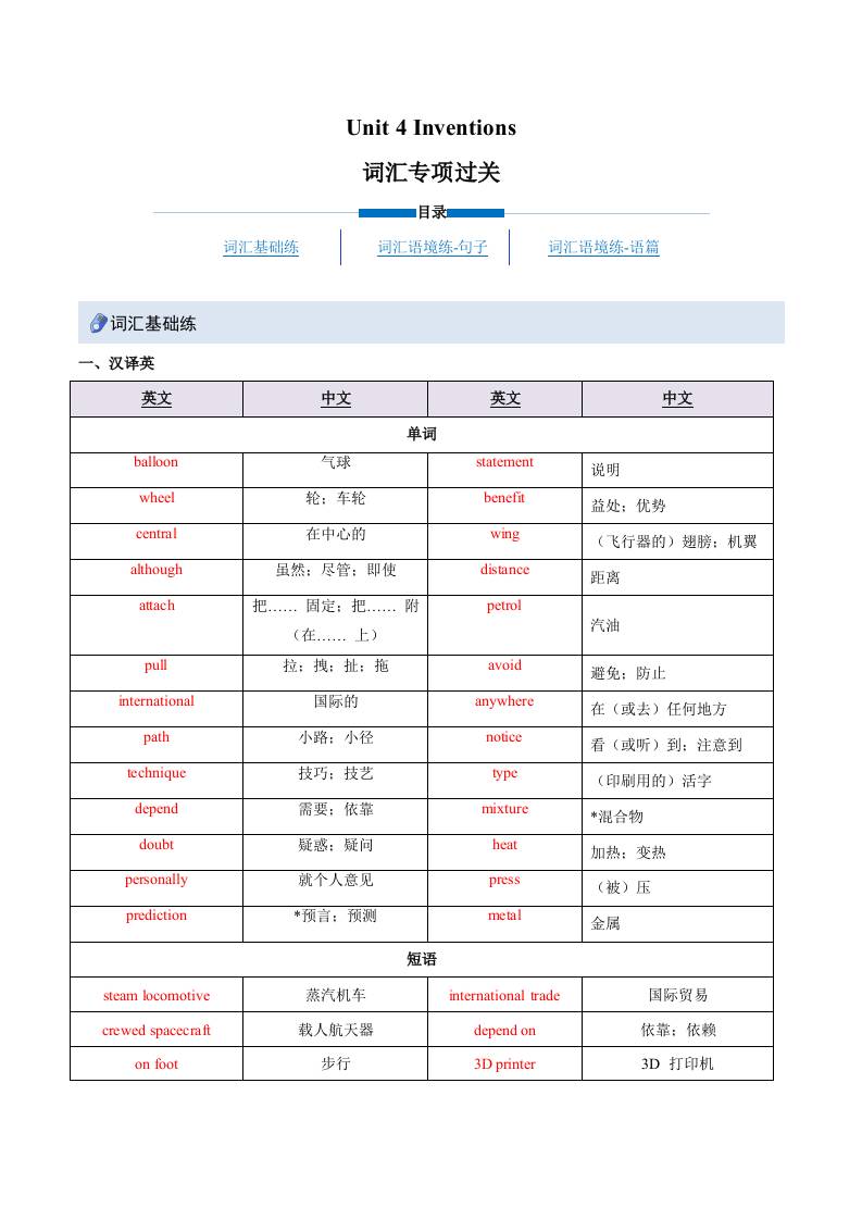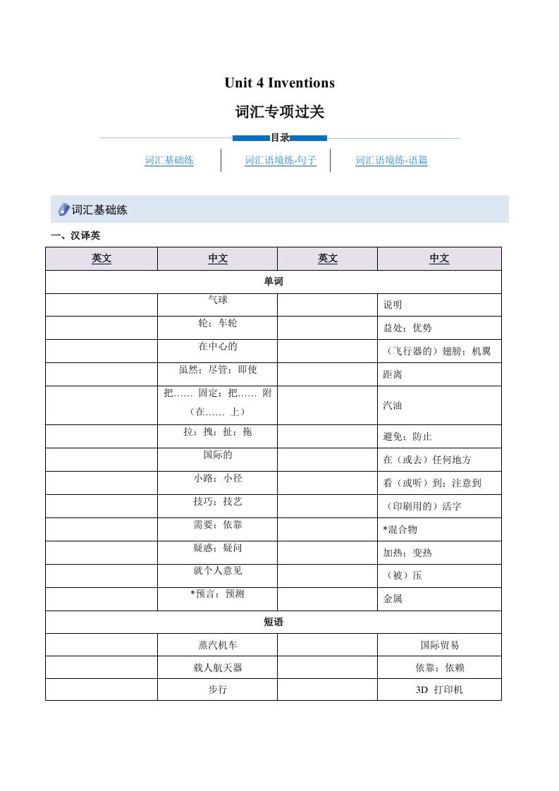Unit 4 Inventions(重难词汇精炼)(原卷版)