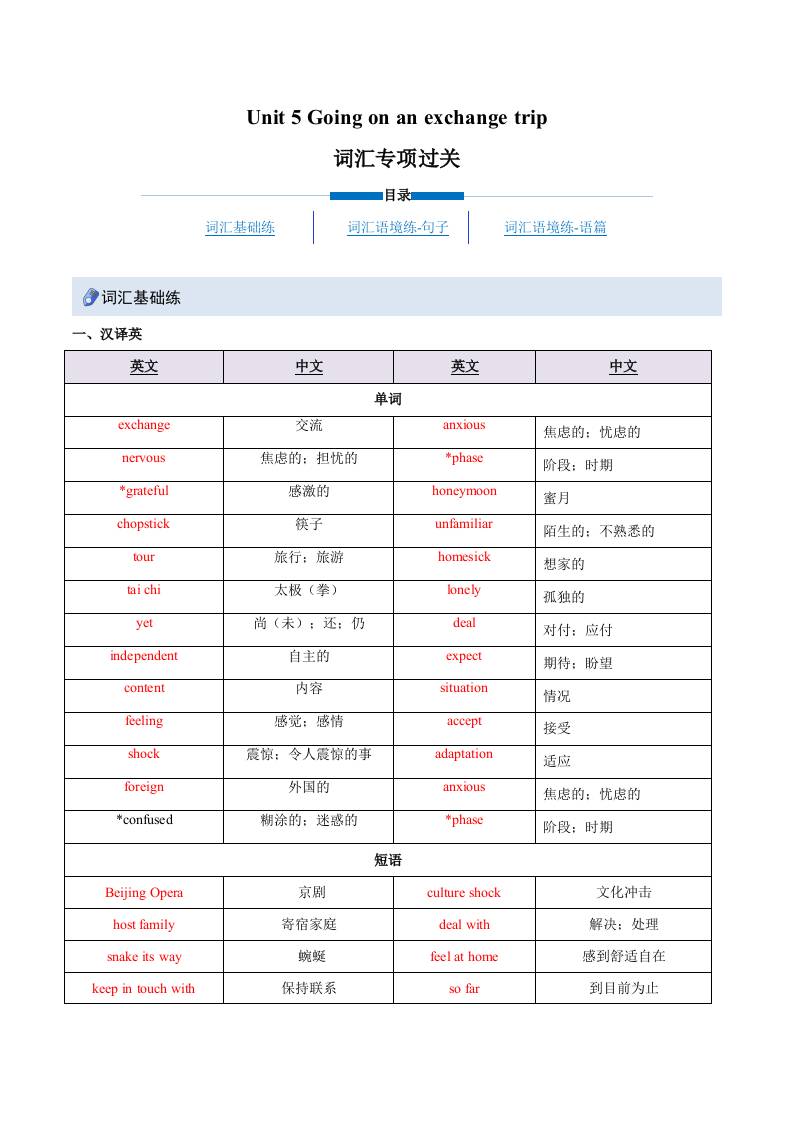 Unit 5 Going on an exchange trip(重难词汇精炼)(解析版)