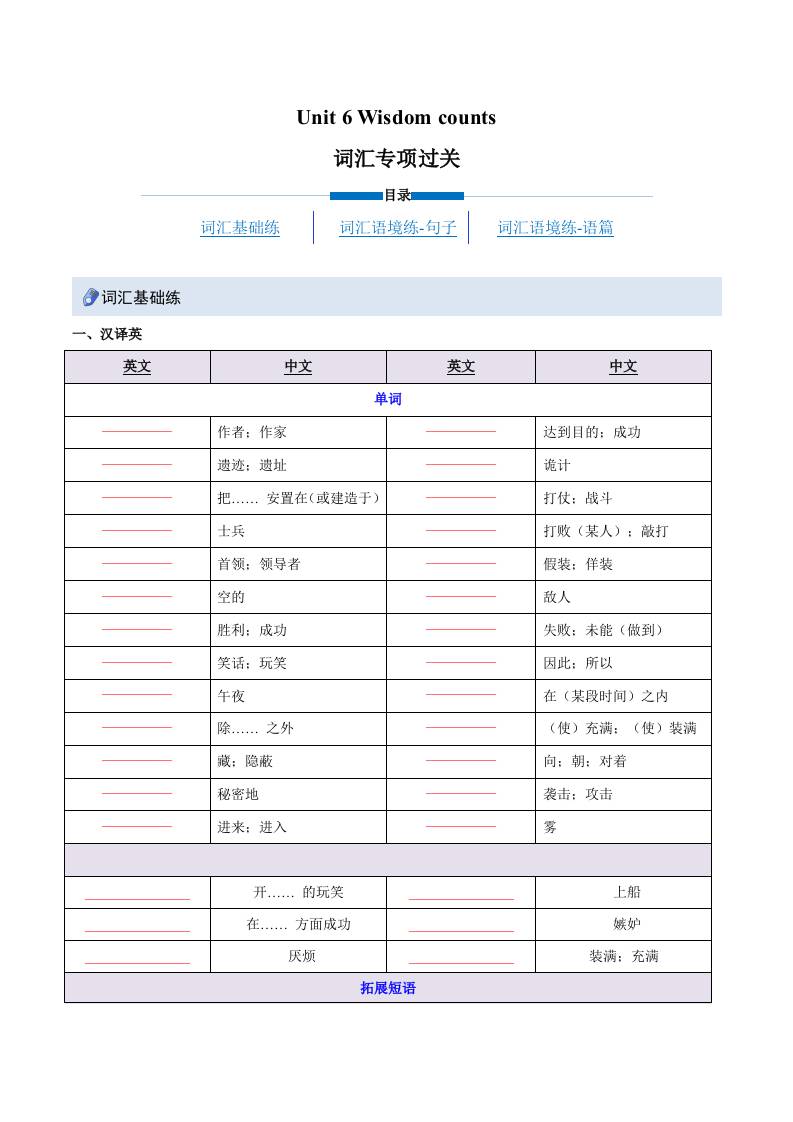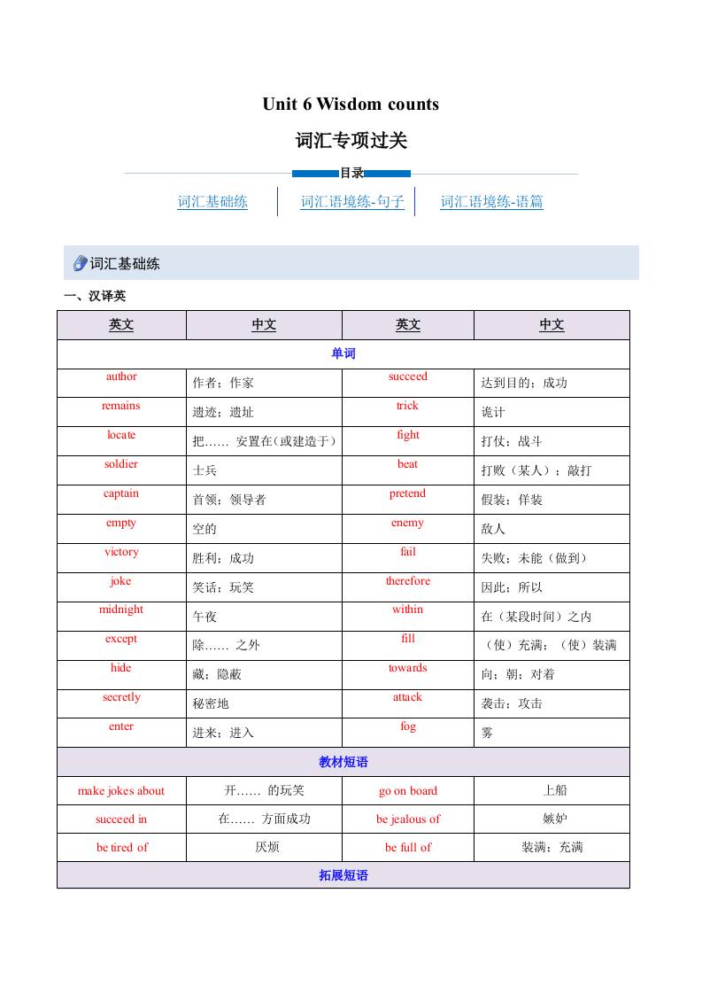 Unit 6 Wisdom counts(重难词汇精练)(解析版)