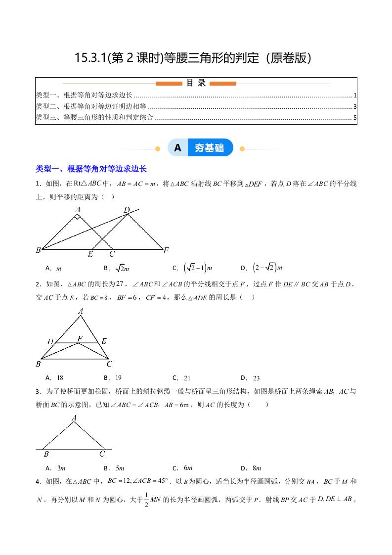 15.3.1(第2课时)等腰三角形的判定(分层作业)(学生版)